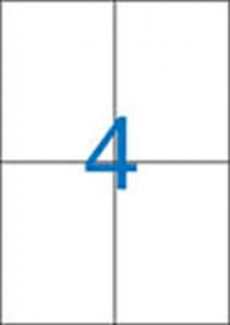 Téglalap alakú A4-es öntapadós címkék, 100 darab A4-es öntapadós ívből álló lapokba rendezve. Öntapadós matt A4-es címkék lézer- vagy tintasugaras nyomtatóval történő megszemélyesítéshez.