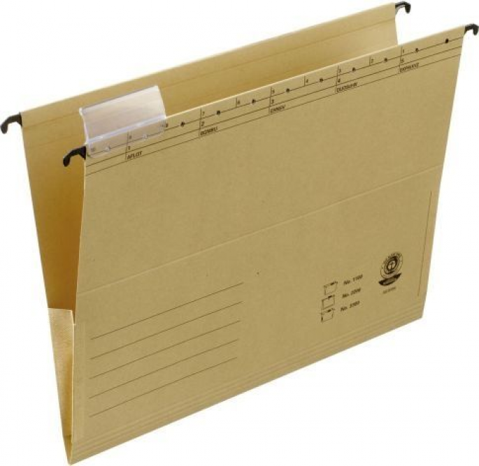 Kraft kartonból készült, fém rúddal. 6 cm-es függőleges merev műanyag nézegető nagyító hatású címkével. Méretek (hosszúság x szélesség): 318x245 mm. Súly: 230 g/mp